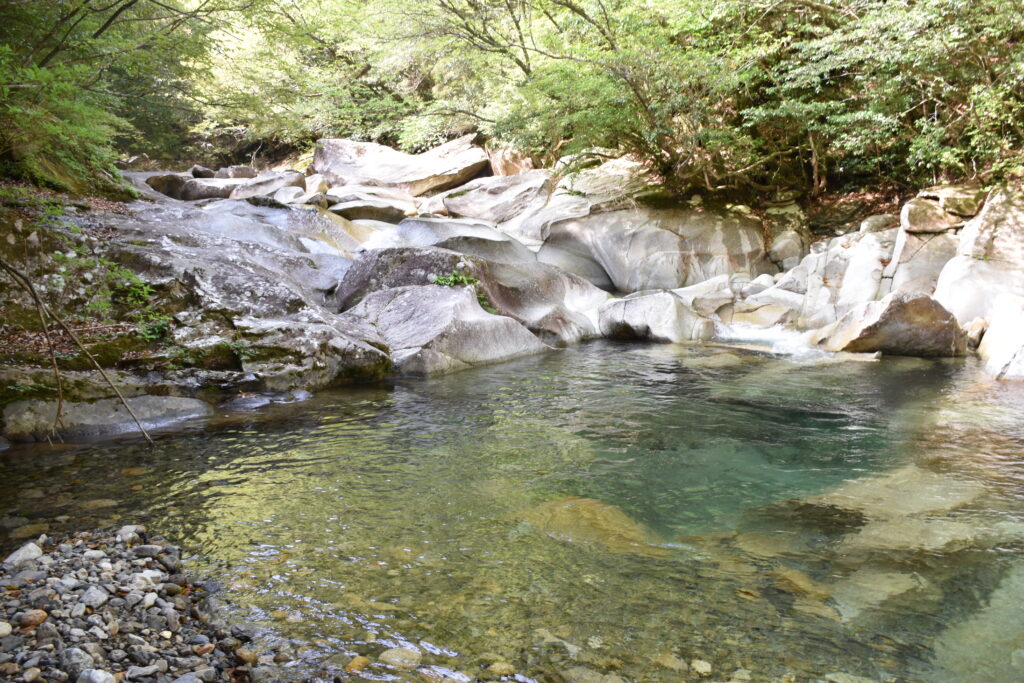 水自体が素晴らしい透明度を誇っている藤河内渓谷ですのでかなり深い滝つぼも底が一部透けて見えます。